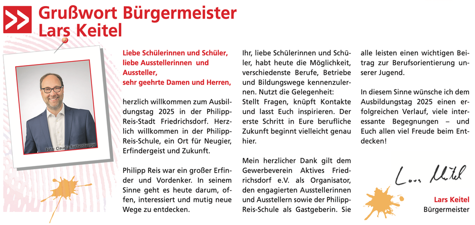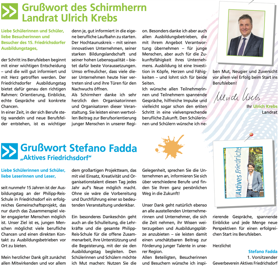 Wir möchten Sie herzlich zum 15. Friedrichsdorfer Ausbildungstag einladen.